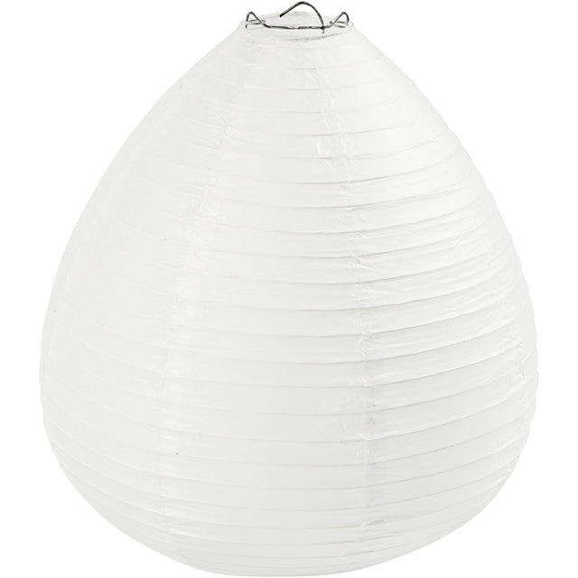 Хартия лампа, изработена от оризова хартия, бяла, форма на капка, височина 27 см, диаметър 25 см, 1 парче.