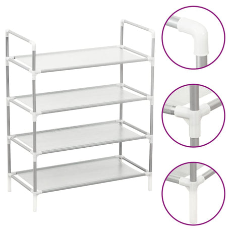 Vidaxl shoe rack with 4 shelves of metal and nonwoven fabric silver color