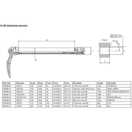Srsuntour suntour staftas q-loc 15 100mm 15qlc2 cr-mo fka069-05