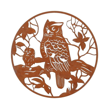 Hbx natural living wanddecoratie karat uil dia30cm roest