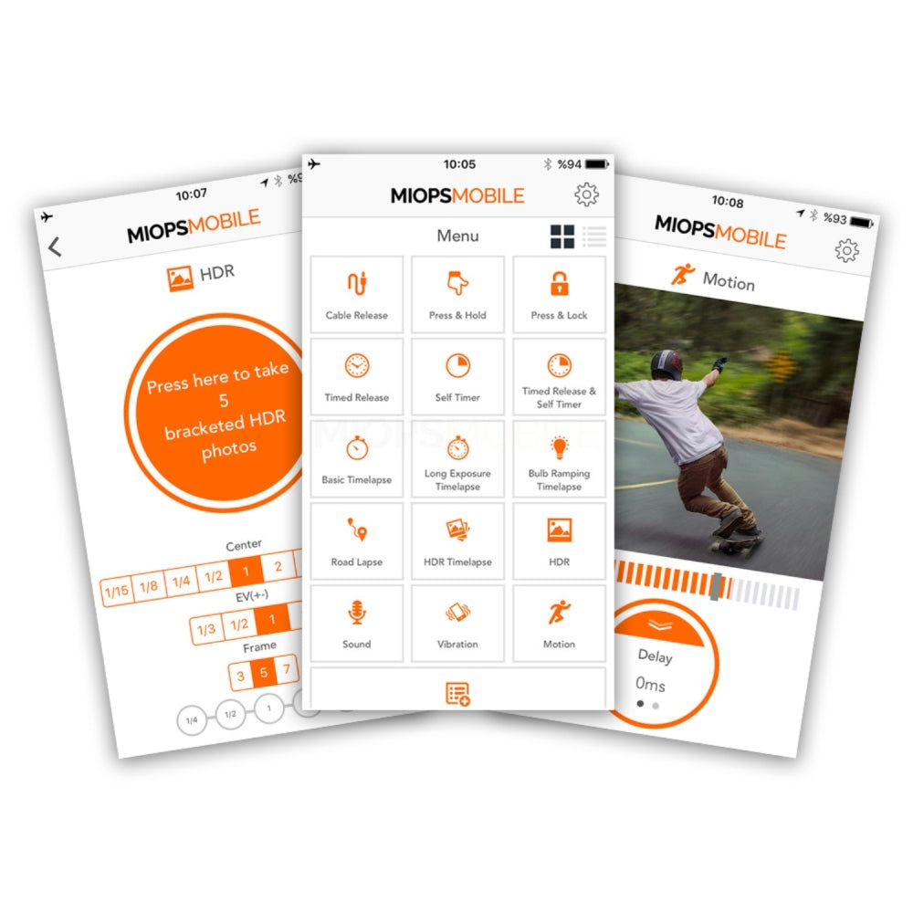 Miops Mobile Dongle е кабел, с който можете да свържете вашия iOS/ Android смартфон и таблет към вашия DSLR или системна камера. Мобилното приложение Miops дава възможност да се използват всички сензори на вашия смартфон, като вибрации, звук, движение и разстояние. Има дори различни опции за време, за да направите снимка в правилните моменти. Освен това има някои стандартни опции, като например да правите снимки по времето, когато държите пръста си на екрана, функция за заключване, с която се правят непрекъснати снимки, (самостоятелен) таймер и HDR опции. Можете дори да използвате комбинация от опциите по -горе, благодарение на функцията "сценарий".