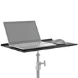 The StudioKing MC-1120-S laptop stand is a versatile and stable solution for using your laptop. Simply place your laptop on the stand and secure it with the included Velcro strap for added security. Ideal for trade shows, events, and presentations! Moreover, the stand is suitable not only for your laptop but also for other accessories. Combined with a tilting bracket and spigot adapter (available separately), you can also tilt the stand and place a brochure or iPad on the edge. You can secure this with the included Velcro strap.