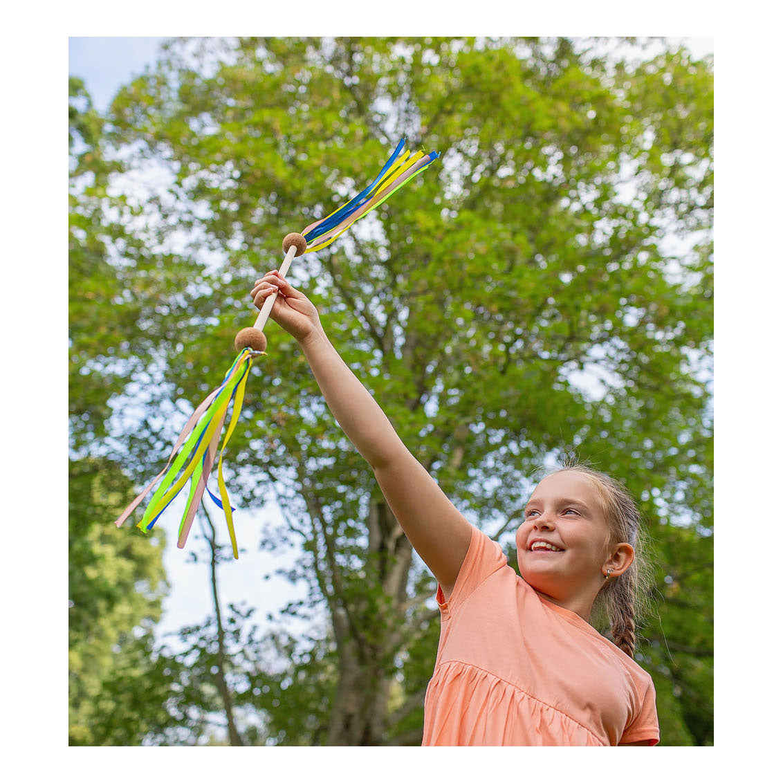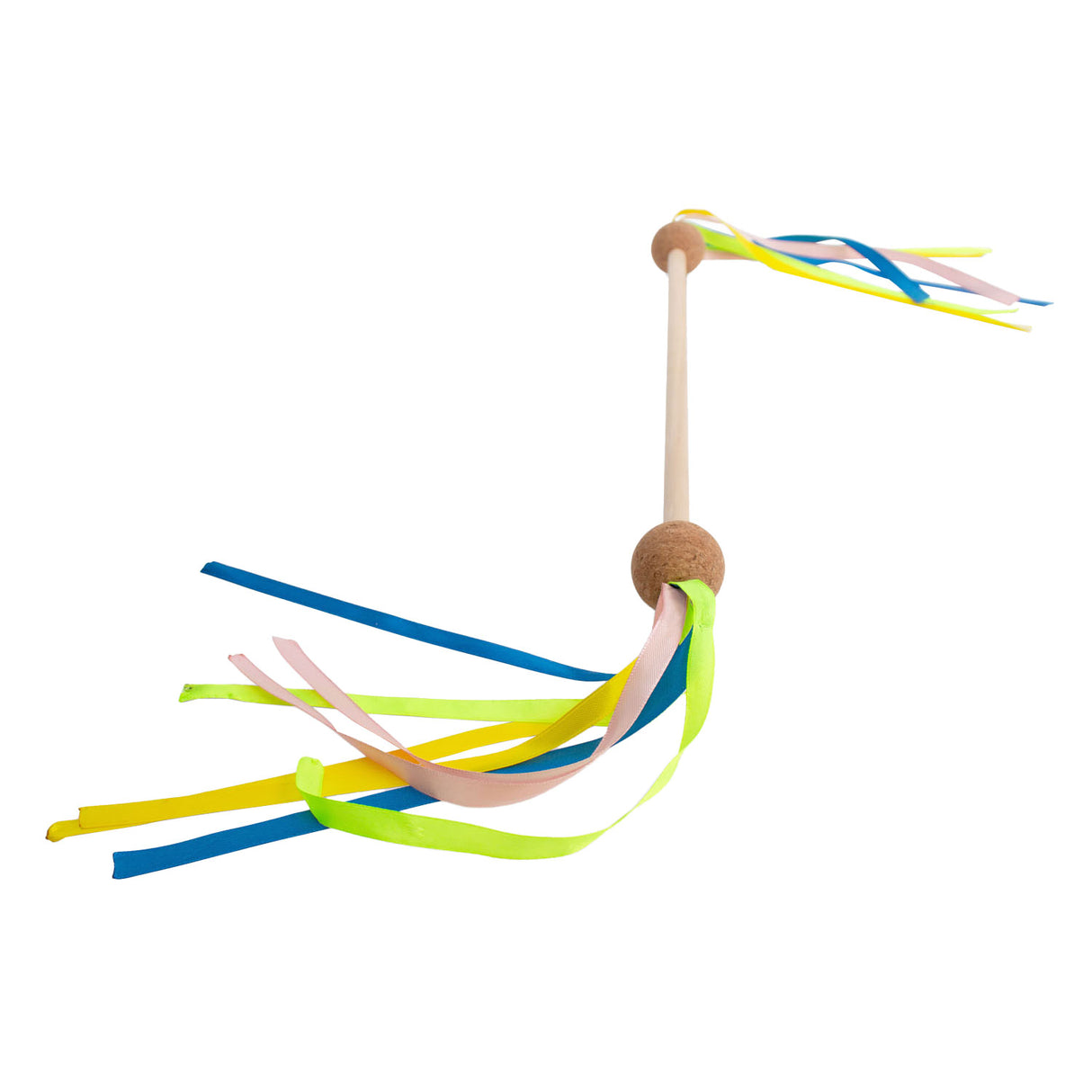 Step into the showbiz spotlight and let your talent shine with our fantastic Twirl stick! Whether you're a rising star or just looking for some fun, this twirl stick will guarantee an unforgettable performance. What will you learn from this game? • Gross motor skills • Hand-eye coordination • Creativity Features • Material: wood, cork, fabric ribbons • Made with 100% FSC-certified wood • Dimensions: stick 45.5 centimeters, 2 balls Ø 4 centimeters • Recommended age: 6+