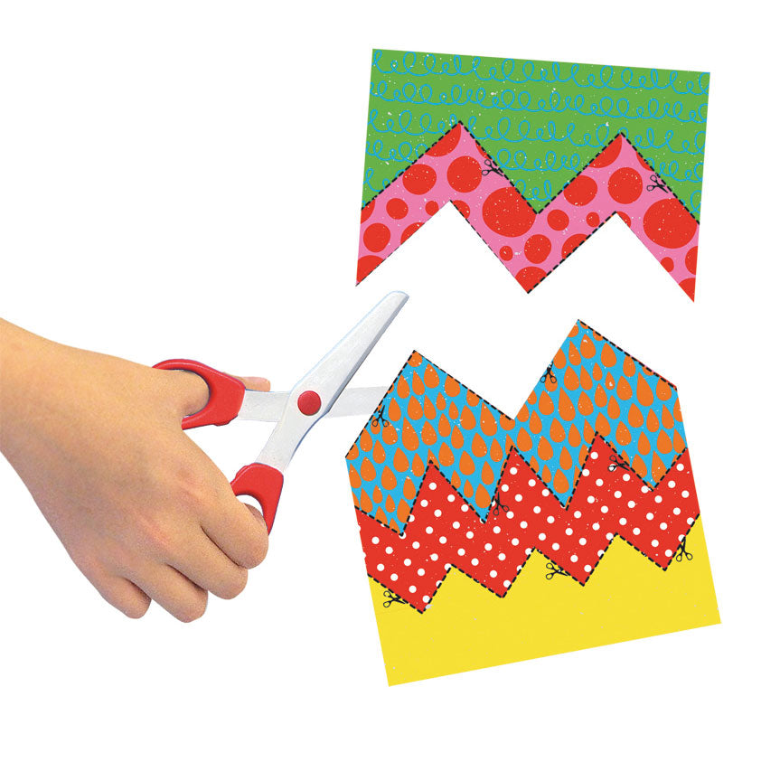 - Includes colored strips for cutting