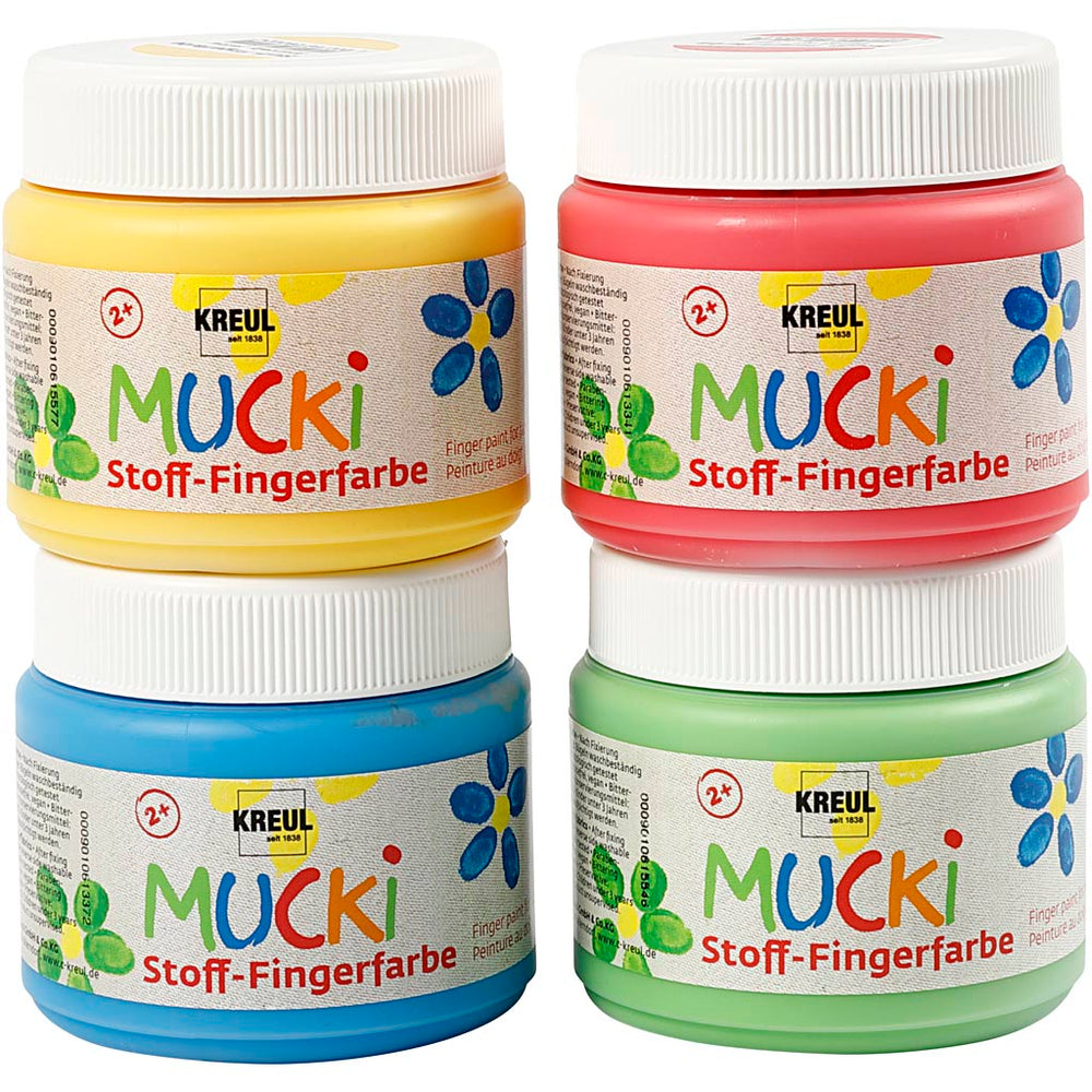 Creativ company muck finger paint, blue, green, red, yellow, 4x150 ml 1 box