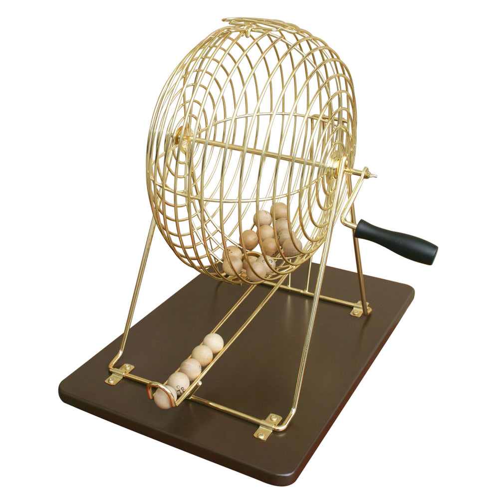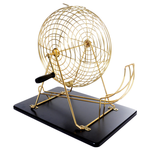This beautifully crafted bingo set is perfect for group games. The gold metal wheel stands securely on a sleek black board, creating a luxurious look. With the included 75 wooden bingo balls and rubberwood control board, you can get started right away. Suitable for all ages, the game provides hours of fun. Host your own bingo nights and enjoy the excitement and camaraderie.
