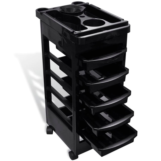 This cart offers everything you'd expect from a high-quality hairdressing trolley. It has a simple yet stylish design and a total of five drawers for tools and accessories.