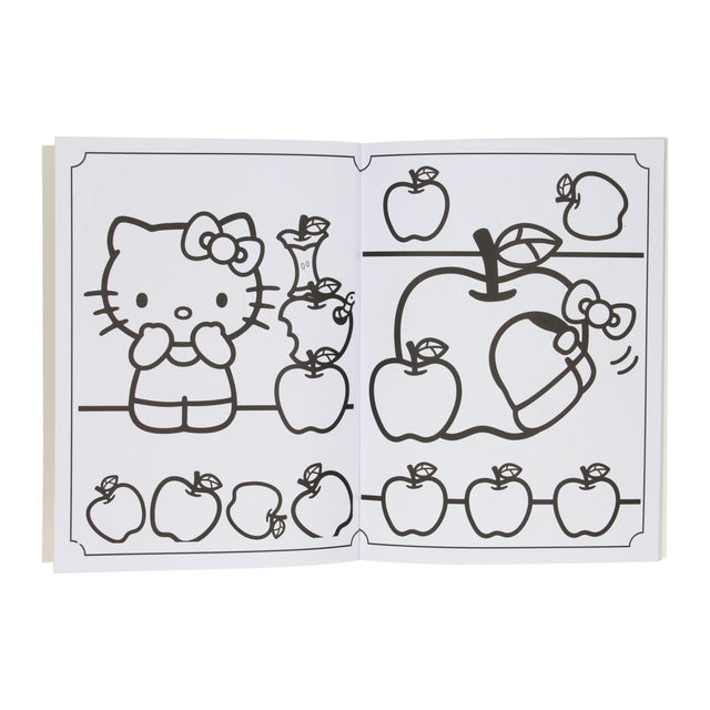 A Hello Kitty coloring book, including 12 colored pencils. The coloring book is A4 size and suitable for children aged 3 to 6.