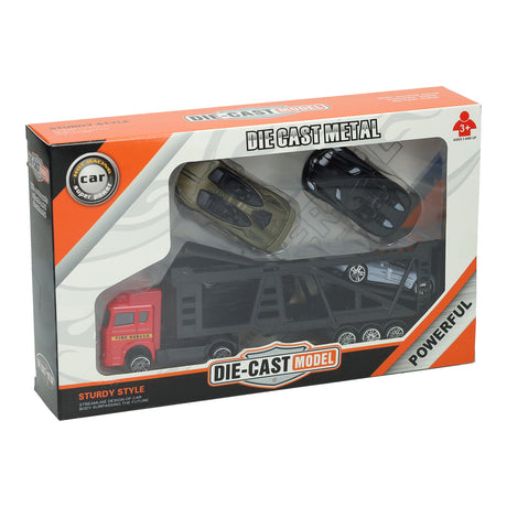 Die-cast transporter with 4 metal cars
