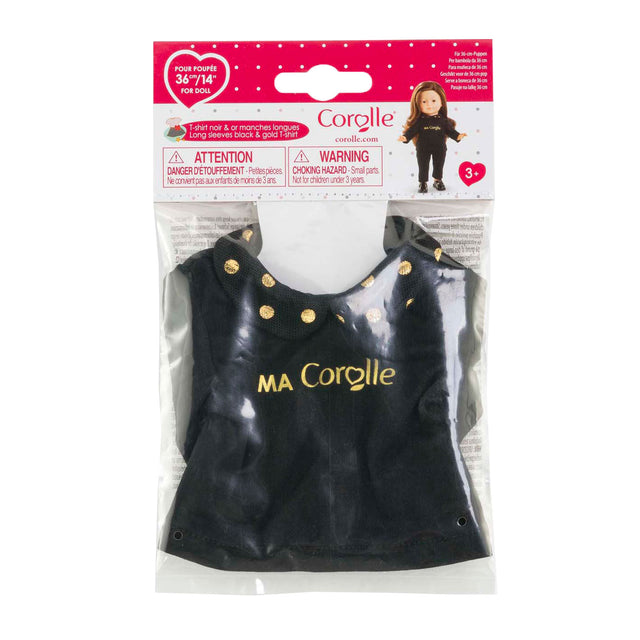 Corolle zwart en goud t-shirt voor poppen, 36cm