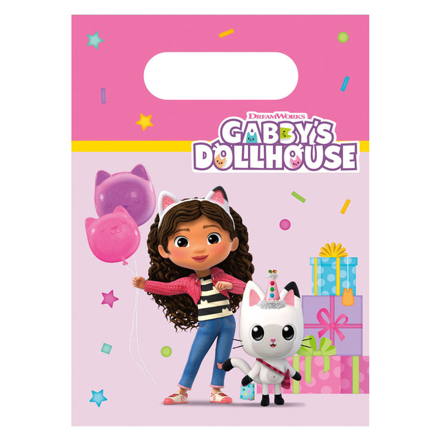 Gabby's Dollhouse paper party bags are perfect for handing out treats at parties. This package contains four bags, each measuring 16 x 22 centimeters.