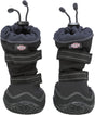 The Trixie Walker Active Long Black ML 2-pack paw protectors are dog shoes that protect against weather, road salt, and injuries. In all these cases, it's important to protect the dog's paws from external elements. For example, in the case of injuries or after paw surgery, it's crucial to prevent dirt from getting into the wounds, and hot asphalt and road salt can severely irritate the paw pads. These paw protectors prevent this with their non-slip, robust PVC treaded sole. The shoes fit securely thanks to the long shaft with rubber strap and hook-and-loop closures, yet are comfortable because they're made of breathable material. Finally, the reflective elements ensure your dog is clearly visible at night and dusk!