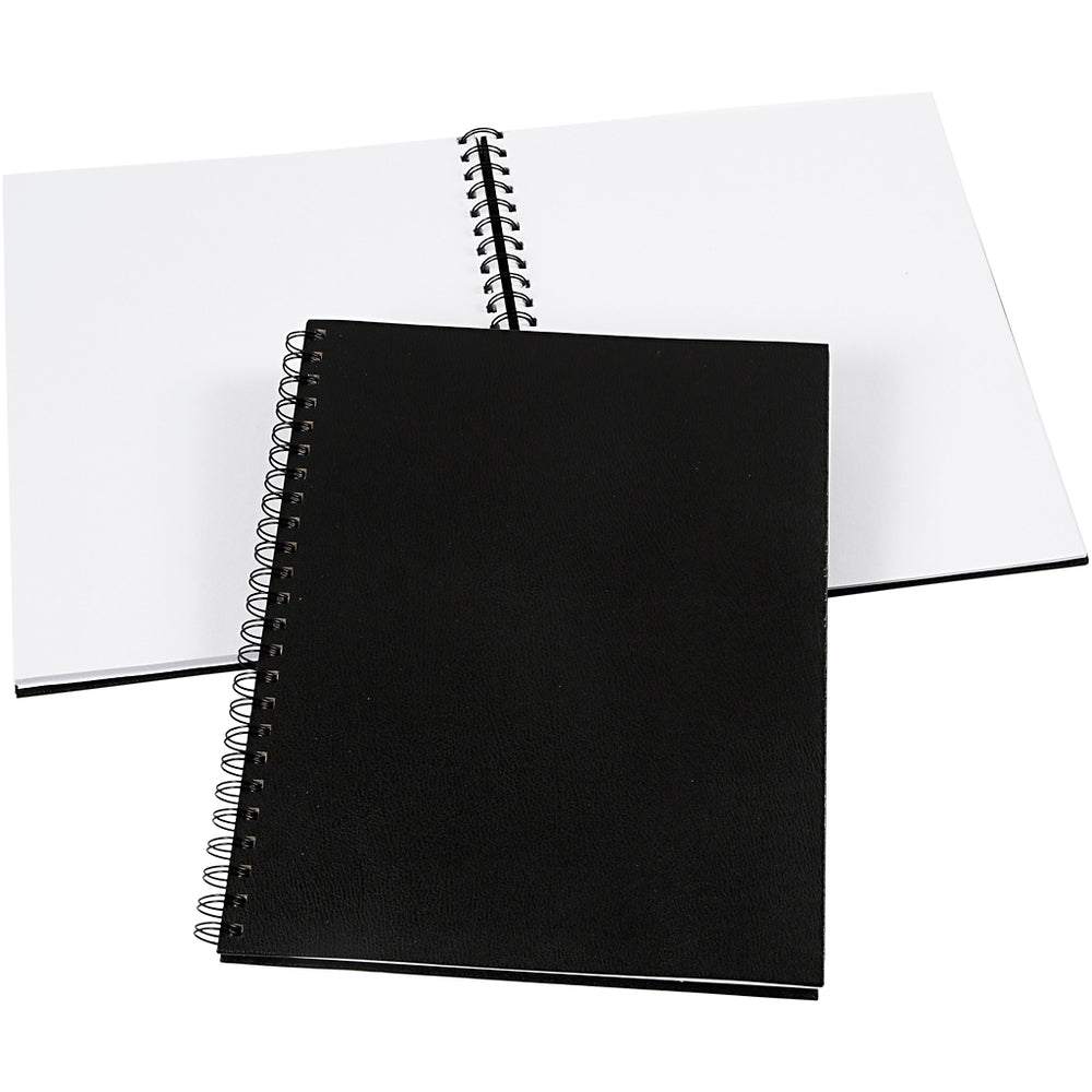 Spiral-bound notebook with 50 white pages and black cover.