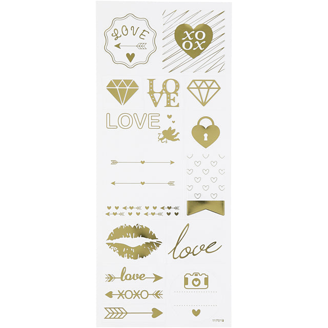 Creativ company stickers, love, sheet 10x24 cm, approx. 14 pieces, gold, 1 sheet