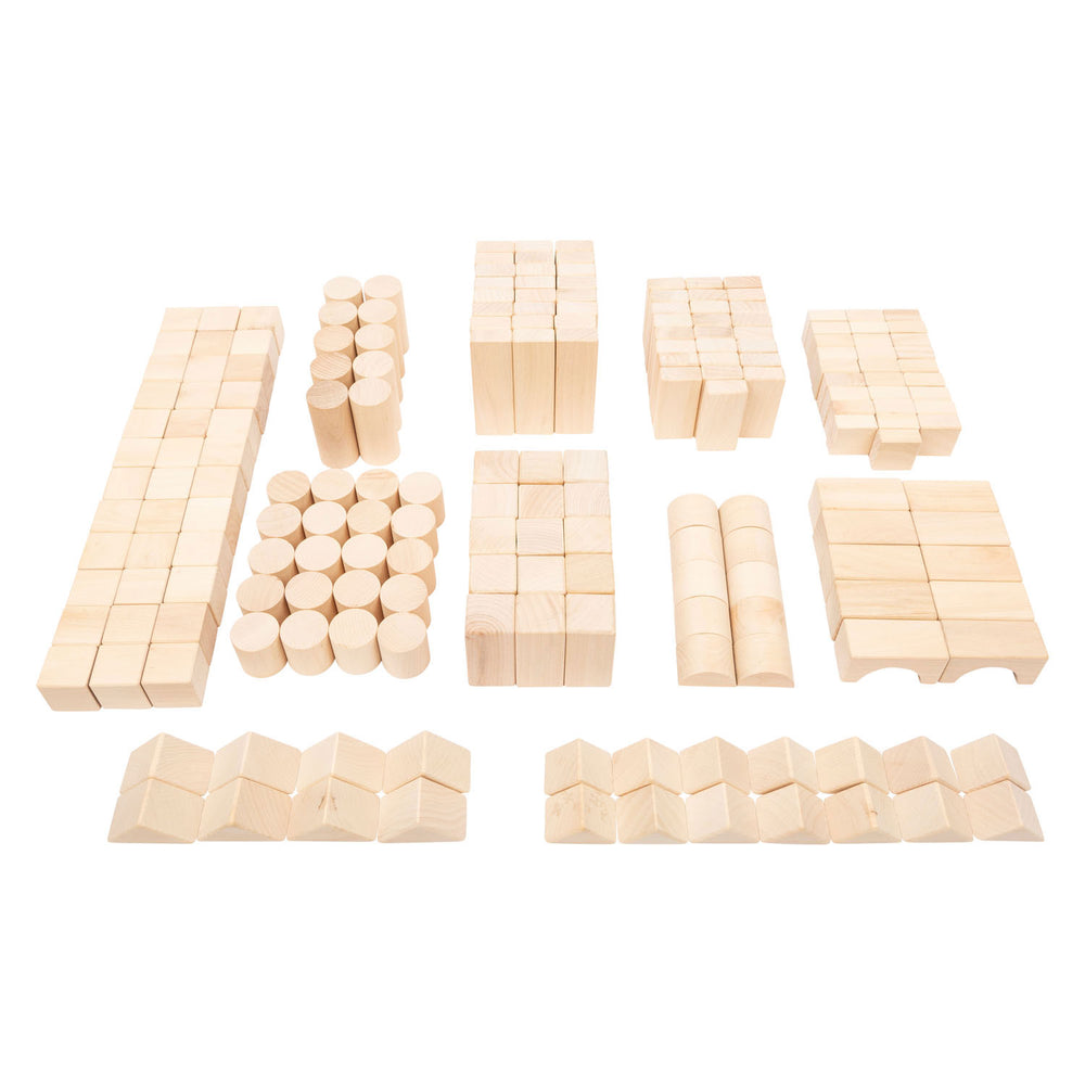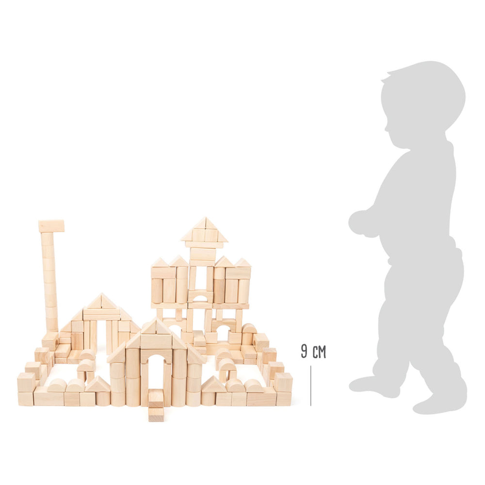 Tato rozsáhlá sada 200 stavebních bloků vyrobených z přírodního dřeva je ideální pro mladé stavební mistry. S těmito stavebními bloky mohou mladí budoucí architekti nechat jejich kreativitu běžet zdarma. Dřevěné stavební bloky mají klasický design a mohou být prakticky uloženy v dodávaném prádle pro přepravu.