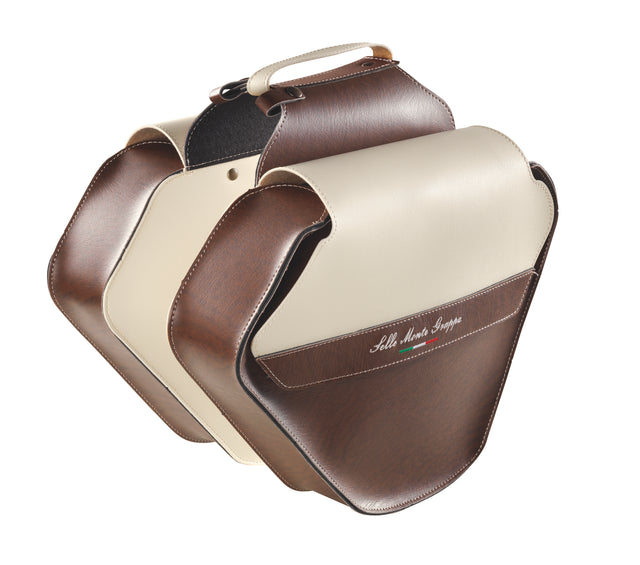 Monte Grappa s dvojitým kola taška módní kožená hnědá kréma Raignovaný a je odeslán, jakmile je zpět na skladě.