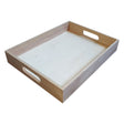 Přímý podnos vyrobený z dřeva Pauwlownia s držadly. Zásobník má velikost 32 x 25 x 5 centimetrů.