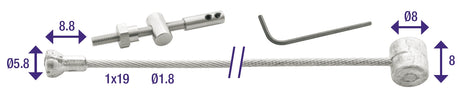 Sada brzdových kabelů 1700 2350 mm z nerezové oceli stříbrná šedá