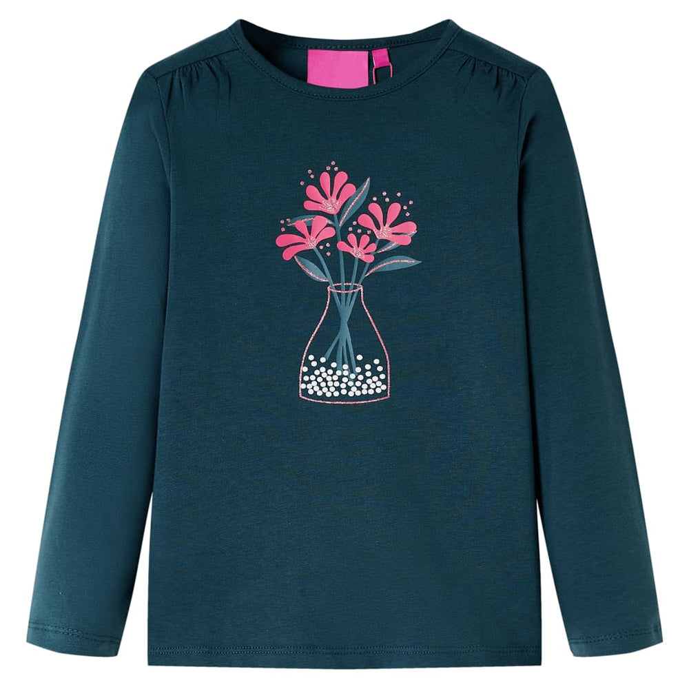 Tato dětská košile má dlouhé rukávy, kulatý výstřih a přímý model. Na této tmavě zelené dětské košili jsou zobrazeny krásné květiny. Dětská košile s dlouhými rukávy je vyrobena z měkkého materiálu s 95% bavlnou a 5% elastanem pro další pohodlí a prodyšnou kapacitu.
