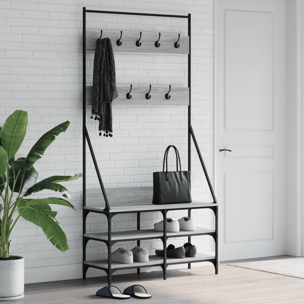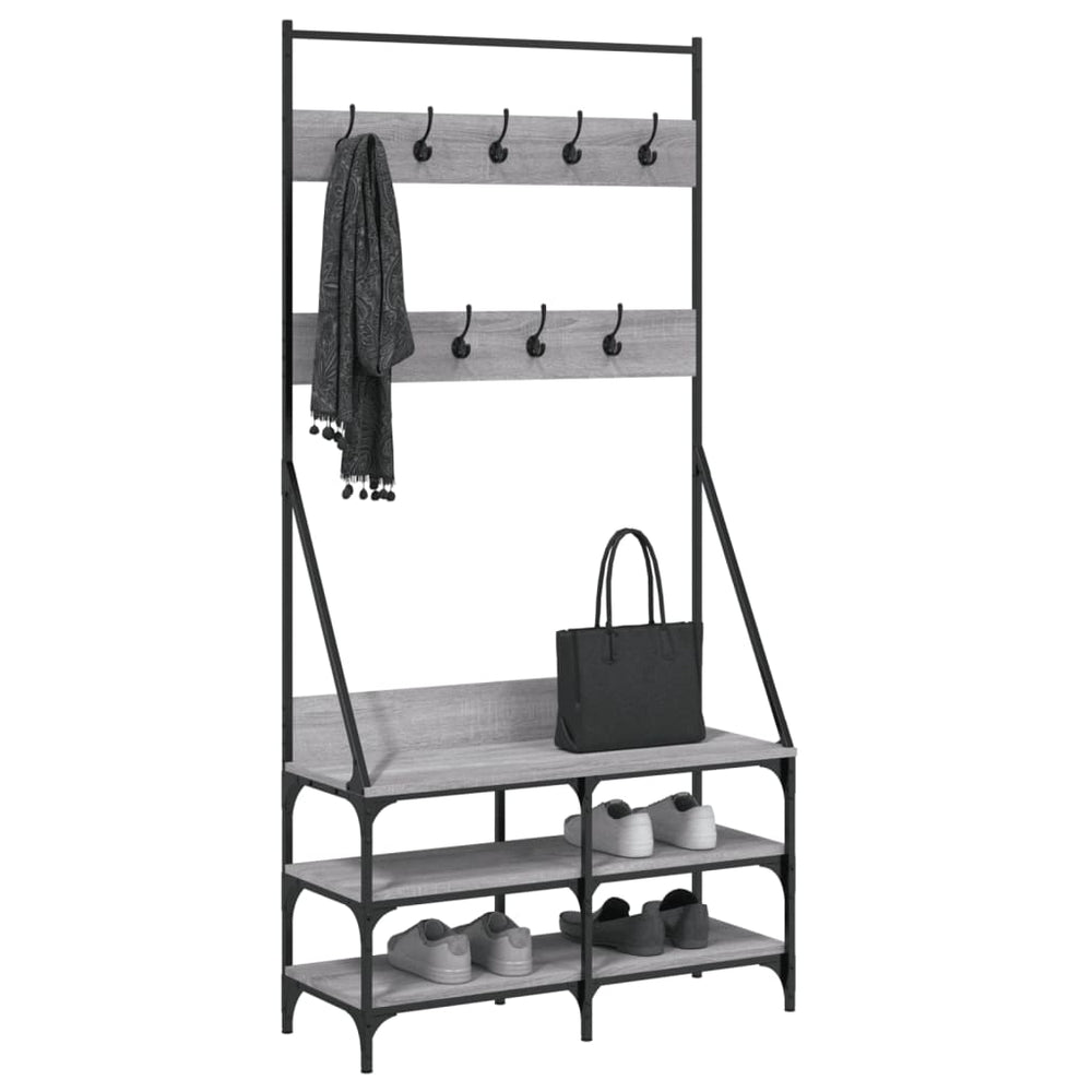 Stojan na oblečení Vidaxl s stojanem na boty 90x34x184 cm šedá barva dubu Sonoma