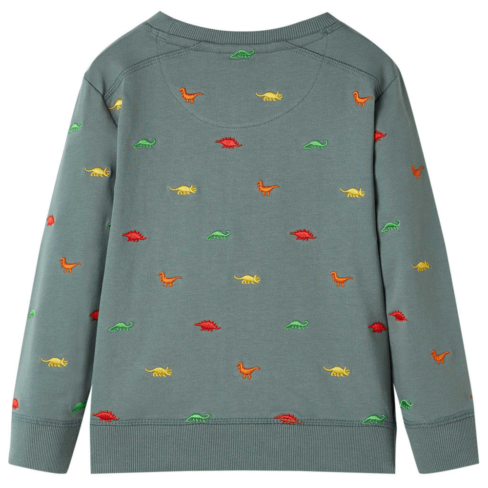 Tento svetr pro děti má dlouhé rukávy, kulatý krk a žebrované okraje na manžetách, výstřihu a dole. Na tomto dětském svetru jsou vyšívány různé typy dinosaurů. Svetr je vyroben ze 100% bojované bavlny, takže se cítí měkký a pohodlně.