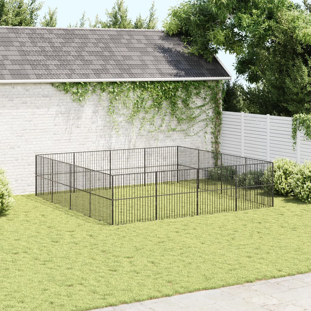 Vidaxl Dog Kennel 16 Panels prášek potažené ocelovou černou
