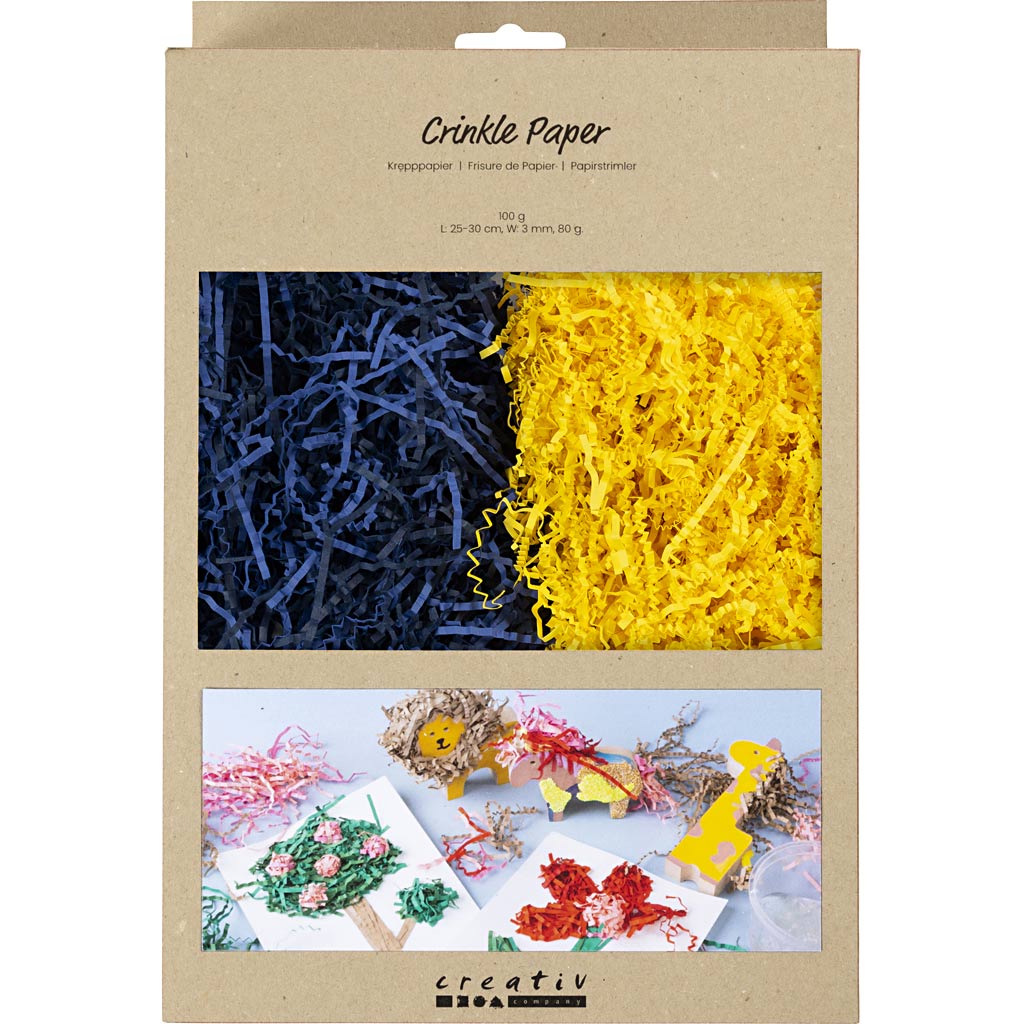 Creativ company crinkle paper, l: 25-30 cm, w: 3 mm, dark blue, yellow, 2x50 gr 1 box