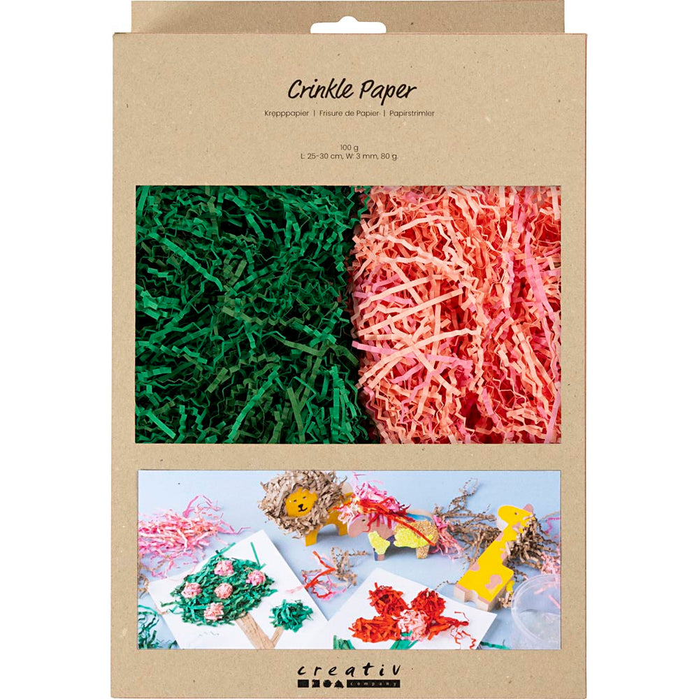 Creativ company crinkle paper, l: 25-30 cm, w: 3 mm, dark green, pink, 2x50 g 1 box