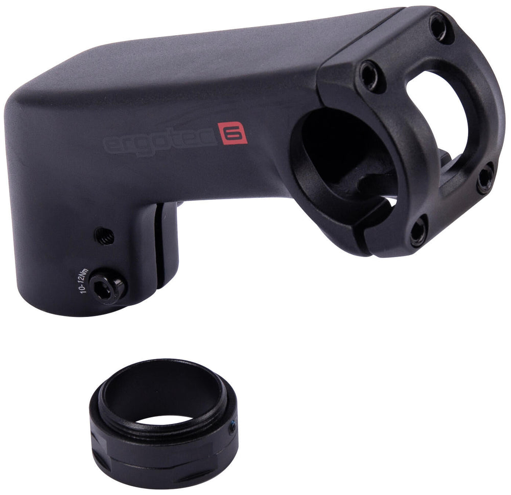 En stilk fra ergotec foran Barracuda I med justering af ring. Fremstillet af Al6061 T6 -materiale. Gaffelklemmen har en diameter på 28,6 mm, og rattet har en diameter på 31,8 mm. Klemmen er 42 + 14 mm. Denne stilk har et sikkerhedsniveau på 6. Frontlængden er 90 mm med en vinkel på 20 grader. Stammen er sort og har en sandblæsere finish.