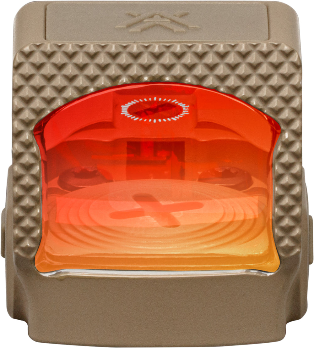 De onbeperkte eye relief geeft je maximale bewegingsvrijheid en overzicht, wat cruciaal is bij tactisch of dynamisch schieten. De mat geanodiseerde afwerking biedt niet alleen een stoere uitstraling, maar beschermt ook tegen slijtage en reflectie. De zandkleurige behuizing sluit naadloos aan bij wapens en accessoires in vergelijkbare tinten – perfect voor een consistente, professionele look.