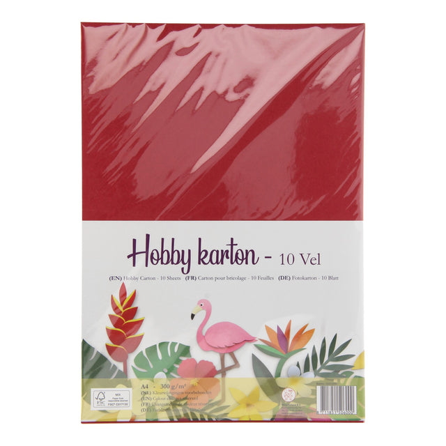 Et sæt på 10 ark hobbypap i forskellige farver. Kapen har en vægt på 300 g/m2 og har A4 -størrelsen.