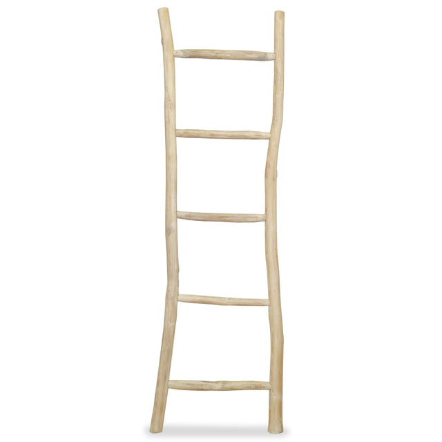 Det er lavet af teak med høj kvalitet, dette gør ham stærk og varer i årevis. Det er også stærkt nok til at blive brugt som stige. Stigen er løsrevet og er ikke bundet til noget, så du kan simpelthen sætte den mod væggen og hænge frisk eller brugt håndklæder på sporten.