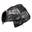 Der SNOOT hat den Vorteil, dass es zusätzlich tarnt, Sie mit dem gleichen wasserdichten Stoff und Tarnmuster wie das Zelt (Polyester 150d) und auch Ihre Linse gut vor Niederschlag und Staub schützt. Ein zusätzlicher Vorteil ist, dass Ihre Hände beim Betrieb der Kamera weniger sichtbar sind.