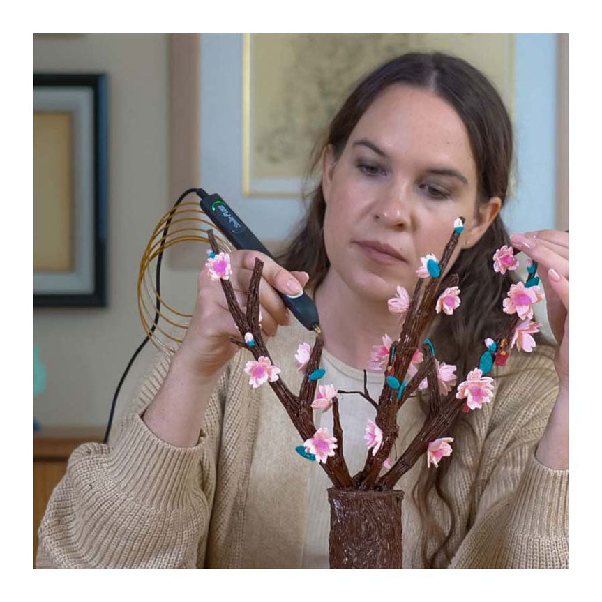 De meest betrouwbare 3D-printpen, compatibel met standaard 1,75 mm filament. Dit is een nieuwe versie van de originele 3Doodler-pen voor 3D-printen, met verbeterde functies en compatibiliteit met 1,75 mm filament. Met 3Doodler Flow kunnen gebruikers driedimensionale objecten maken door verwarmd filament door een mondstuk te extruderen. In tegenstelling tot traditionele desktop 3D-printers kunnen gebruikers met 3Doodler Flow vrijer tekenen en creëren, net als met een gewone pen of potlood. Kunst en creativiteit open voor iedereen. 3Doodler Flow zorgt voor een soepelere extrusie, betere temperatuurregeling en grotere betrouwbaarheid vergeleken met eerdere versies. Het wordt vaak gebruikt voor artistieke creatie, ambachten, prototyping, educatieve projecten en meer. De veelzijdigheid en het gebruiksgemak maken 3Doodler Flow een populaire keuze onder makers van alle vaardigheidsniveaus. Eenvoudig als 1, 2, 3D! Ontworpen om gebruiksvriendelijk te zijn en vereist geen complexe software- of hardwareconfiguratie. Sluit hem gewoon aan, plaats het 3Doodler Flow-plastic erin, wacht tot de 3D-pen is opgewarmd en je bent klaar om te creëren! Creëer en teken 3D-structuren, uit de vrije hand of op stencils, met behulp van geëxtrudeerd, verwarmd plastic dat vrijwel onmiddellijk uithardt! Een prettig, praktisch hulpmiddel. Van ingewikkelde sculpturen en gedetailleerde modellen tot functionele prototypes en decoratieve objecten, de mogelijkheden zijn eindeloos. Met 3Doodler kun je je creativiteit de vrije loop laten en alles ontwerpen, van sieraden en accessoires tot huisdecoratie en gepersonaliseerde geschenken. Of je nu een professionele kunstenaar, een hobbyist, een onderwijzer of gewoon iemand bent die de wereld van 3D-printen op een leuke en toegankelijke manier wil verkennen, 3Doodler biedt een veelzijdige tool om je ideeën in drie dimensies tot leven te brengen.