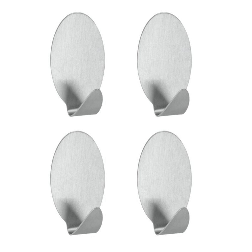 4 ovale Klebehaken aus Edelstahl (klein) von Metaltex, zum Beispiel zum Aufhängen von Küchenwäsche. Selbstklebend, ohne Werkzeug anbringbar.