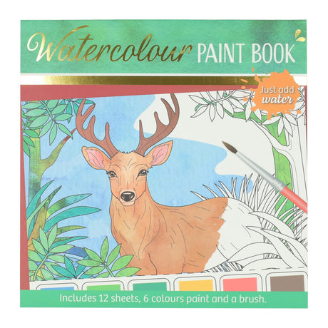 Wins holland waterverfkleurblok volwassenen - bosdieren - incl penseel en 6 kleuren waterverf