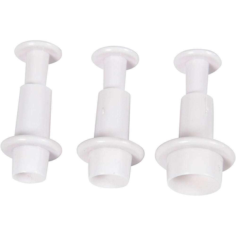 Formulare mit Stempel sind in einem Satz von drei erhältlich. Dieses Set enthält weiße Formen in der Form eines Kreises. Die Durchmesser der Kreise betragen 2,1 cm, 2,3 cm und 2,6 cm. Diese Schutzformen eignen sich perfekt, um schöne und genaue Formen in verschiedenen Materialien herzustellen.