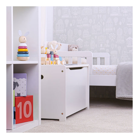 Delta Kinder TB83460GN-130 Aufbewahrungsbox aus Holz mit Rückenlehne weiß