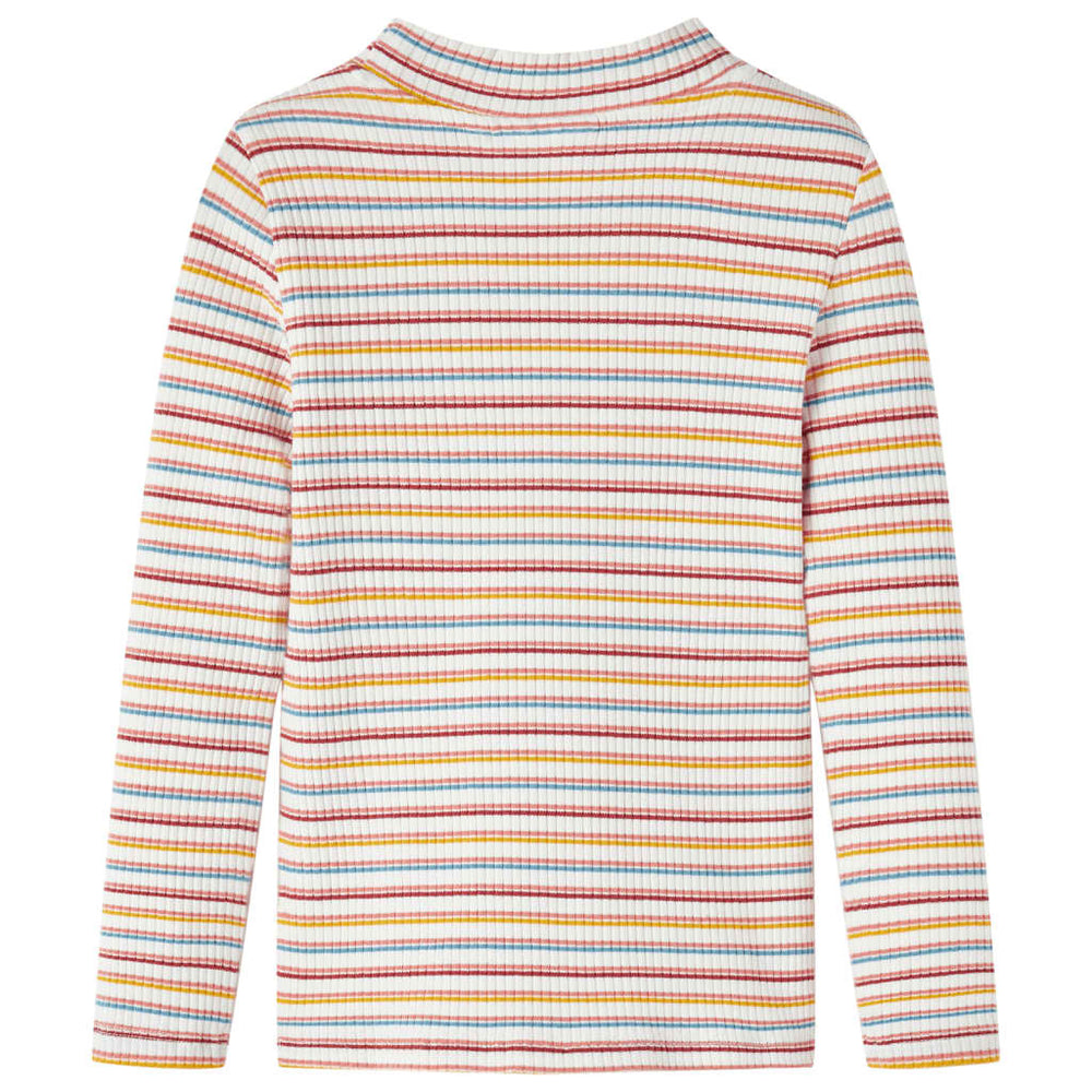 Dieses Kinderhemd hat lange Ärmel, einen niedrigen Rollkragenpullover und eine schmale Passform. Dieses T-Shirt hat ein mehrfarbiges gestreiftes Design. Das Kinderhemd mit langen Ärmeln besteht aus weichem Material mit 95% Baumwolle und 5% Elastane, um zusätzlichen Komfort und atmungsaktive Kapazität zu erhalten.