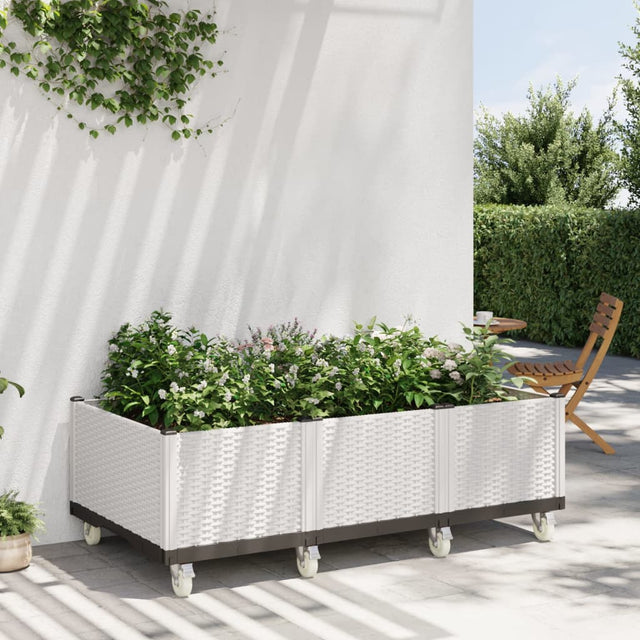 Vidaxl -Pflanzer mit Rädern 150 x 80 x 54 cm Polypropen weiß