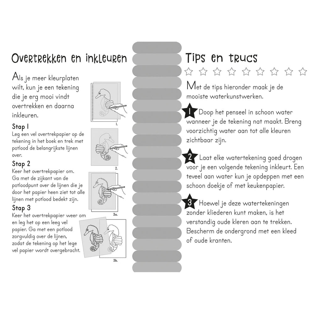 Machen Sie mit diesem magischen Wasserfarbenbuch bunte Zeichnungen. Malen Sie die Zeichnungen mit Wasser, lassen Sie sie trocknen und malen Sie sie wieder!