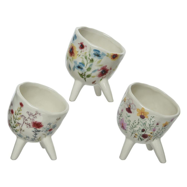 Decoris bloempot dolomiet h11,4cm m.bloemmotief