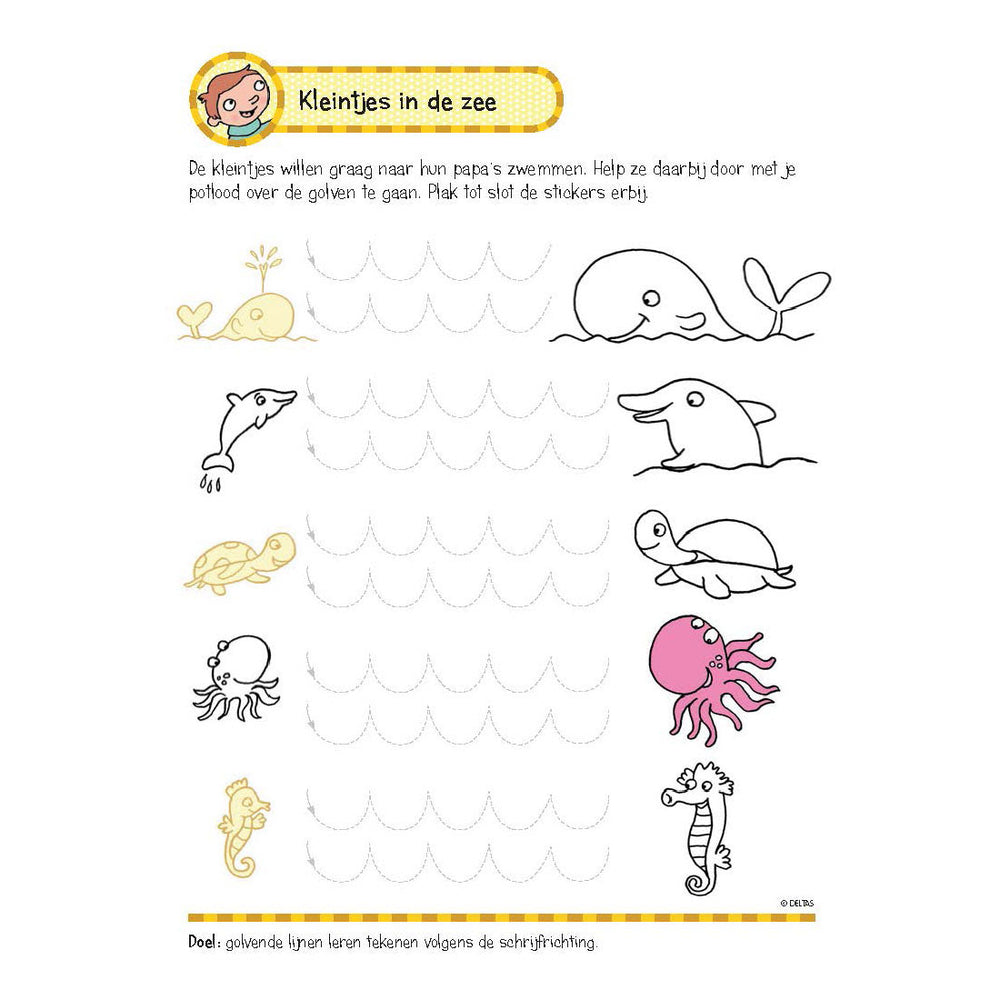 Libro de ejercicios de Deltas con pegatinas - Primeros juegos de escritura (5-6 años)