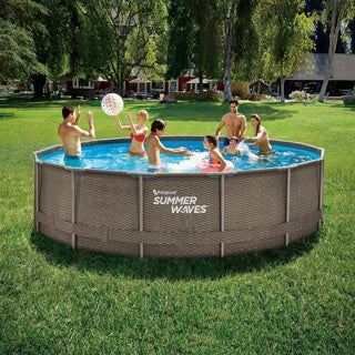 Ondas de verano piscina marco activo 457 x 106 cm oscuro doble rattan + filtro pomp