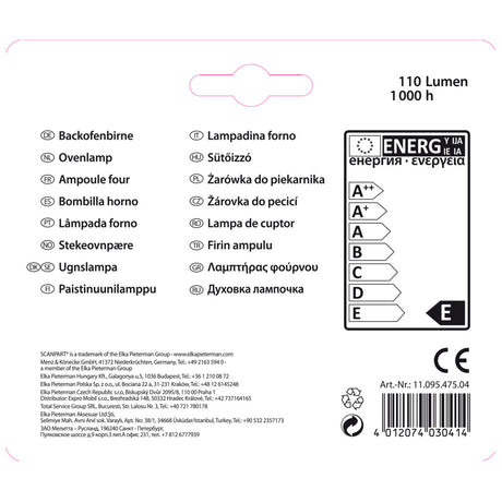 Lampara horno scanpart e14 15w 300gr tubo a2