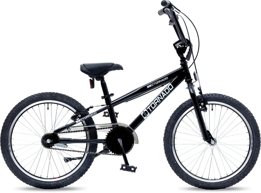Esta bicicleta es el Royal Bugatti BMX Tornado 20 '' en negro. Tiene un marco de acero de alta calidad y frenado en V de aluminio para un rendimiento de frenado óptimo. El manillar de estilo libre con rotor de 360 ° ofrece muchas opciones para trucos y acrobacias. La bicicleta también tiene una rueda libre y un poste de asiento de relajamiento para mayor comodidad. Con neumáticos exteriores de 20 x 2,195 "y un tamaño de marco de 52 cm, esta bicicleta es adecuada para diferentes sitios. El peso de la bicicleta es de 15 kg y el peso máximo permitido es de 80 kg. El tallo, el plato y los aspensos son resistentes y duraderos. Esta bicicleta está hecha en la UE y la marca es tornado.