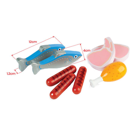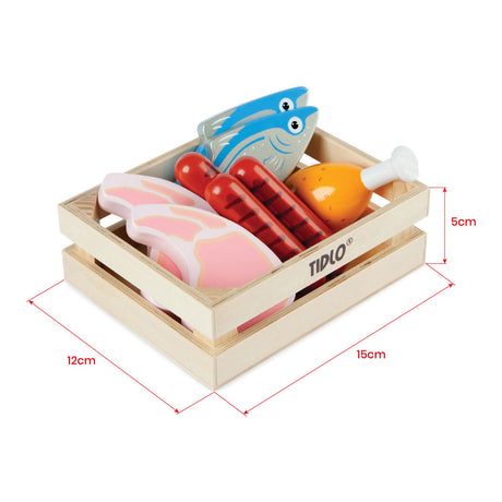 Playets de madera Tidlo carne y pescado en caja, 8dlg.