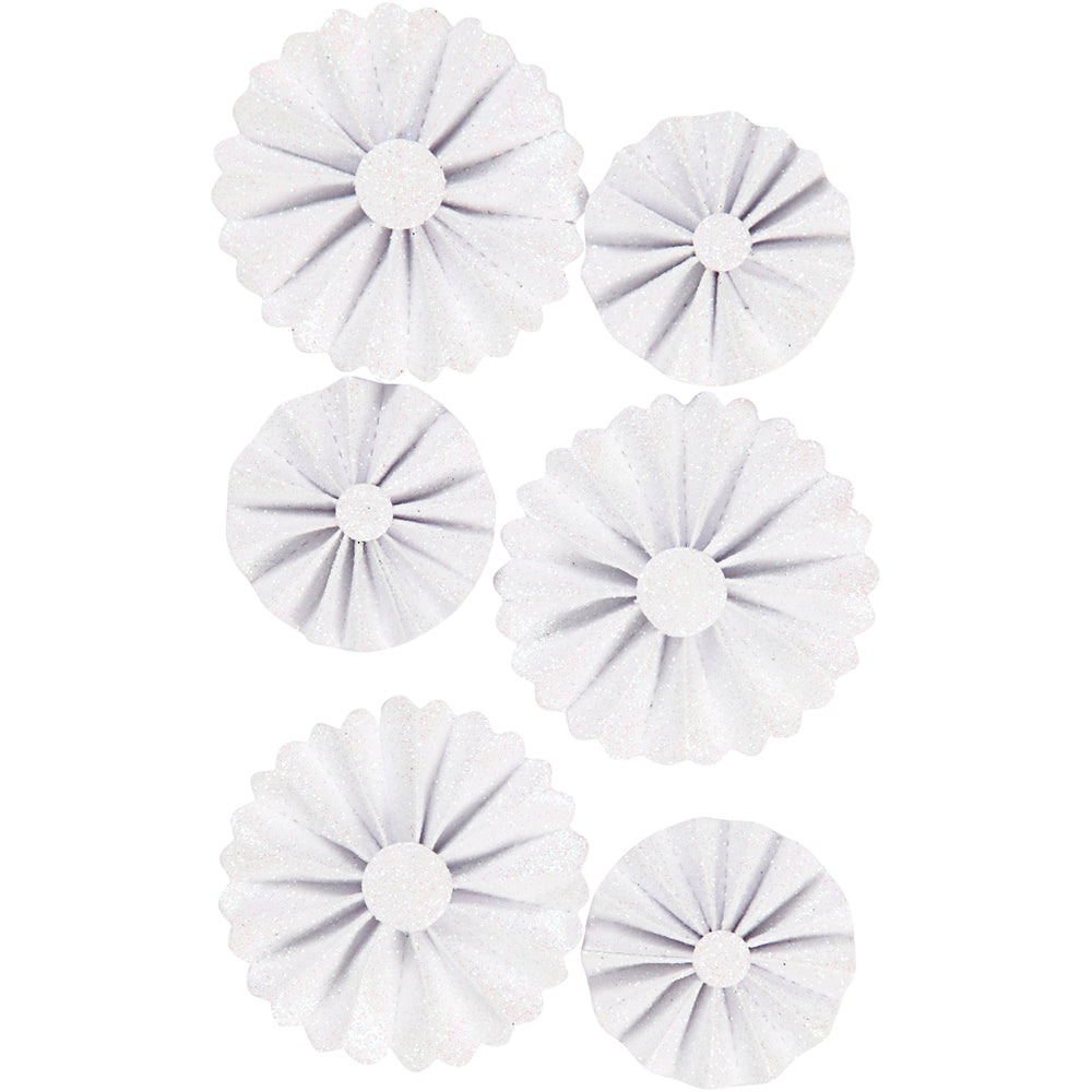 Vivi gade rosettes, d 35+50 mm, white glitter, 6 pieces 1 box