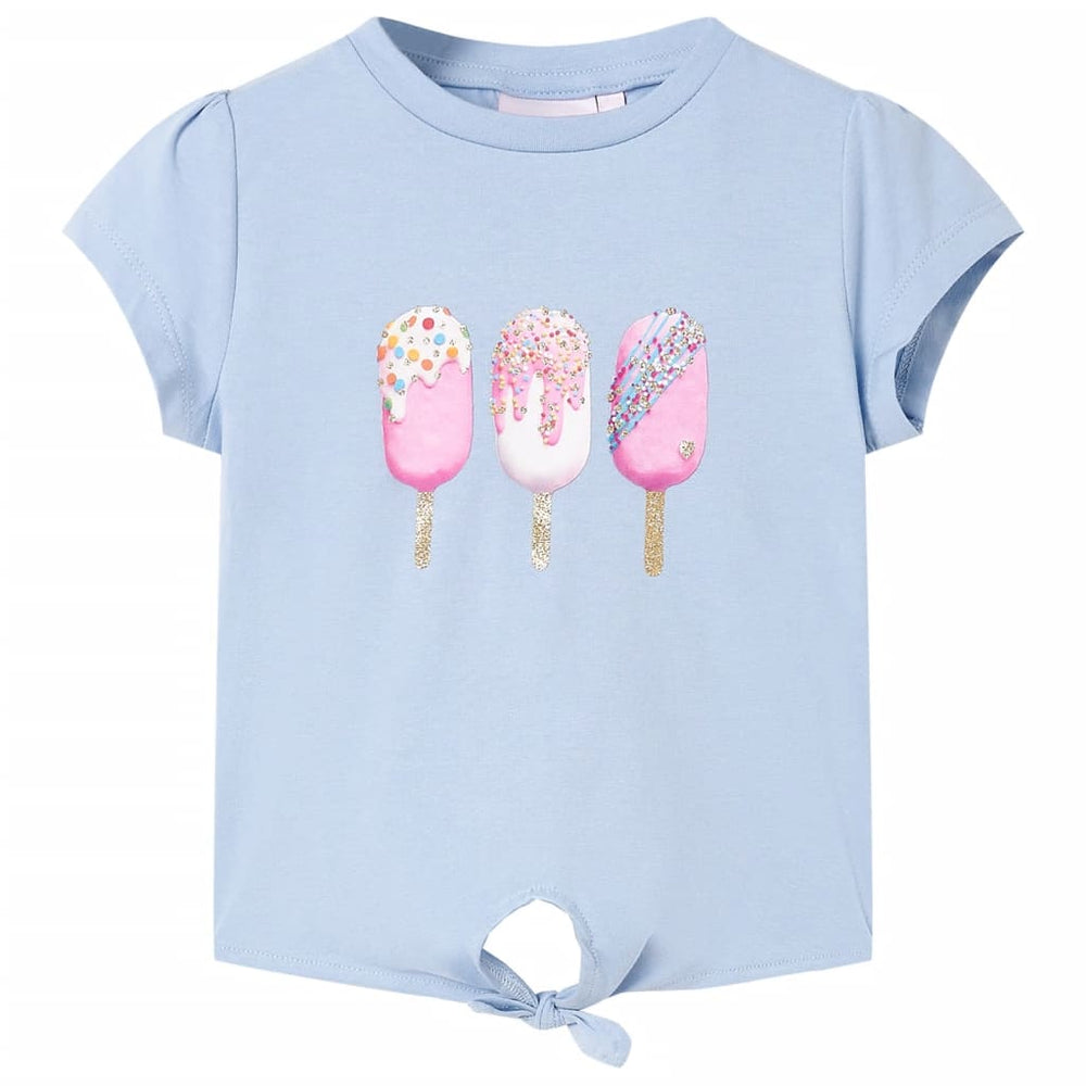 Esta camisa para niños tiene mangas cortas, un escote redondo y un modelo recto. Esta camisa para niños muestra helados.