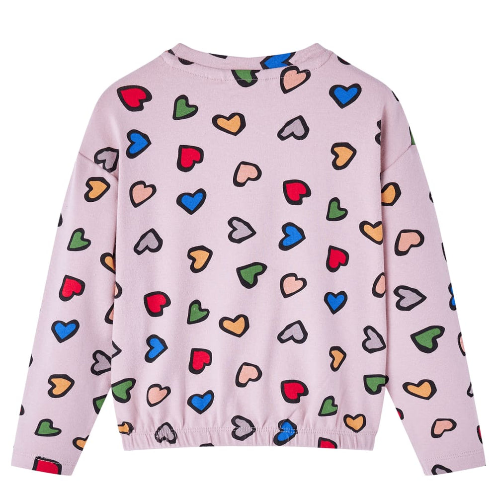 Este suéter para niños tiene mangas largas, un cuello redondo y un dobladillo elástico. Este suéter para niños está impreso en todas partes con corazones coloridos y tiene una bolsa pequeña. Está hecho de 95% de algodón y 5% elastano para la comodidad y el calor.